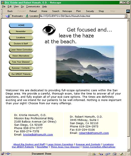Doctors Kristie and Robert Homuth needed a site for their optometric practices so we created this informative and beautiful site! Let us put our best efforts into designing your new pages! |